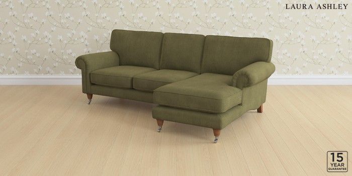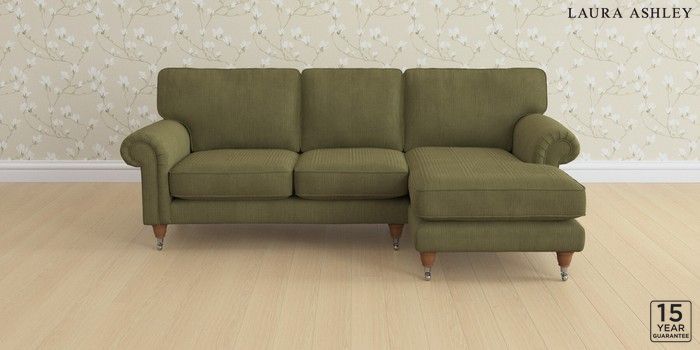6.12.1 Buy Kingston by Laura Ashley Medium Sofa Chaise - Right Hand Sinclair Cord Ivy Green Low Chrome Castor - Teak from the Next UK online shop Click here to use our accessible website