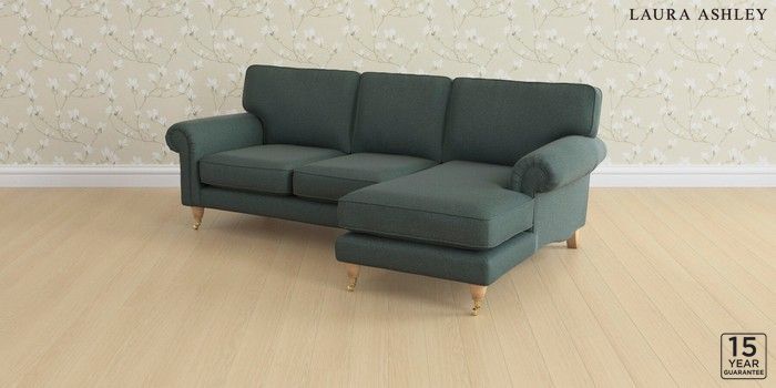 6.12.1 Buy Kingston by Laura Ashley Medium Sofa Chaise - Right Hand Wooton Forest Green Low Brass Castor - Light Oak from the Next UK online shop Click here to use our accessible website