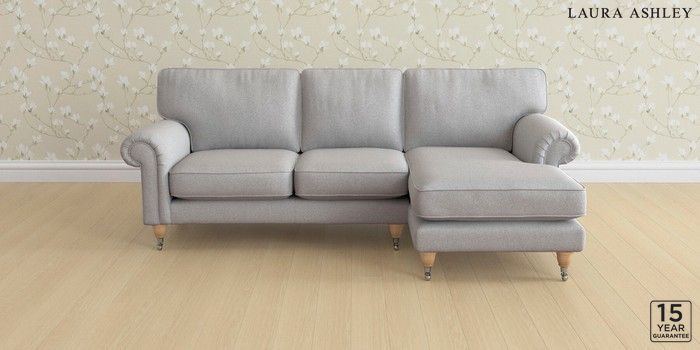 6.12.1 Buy Kingston by Laura Ashley Medium Sofa Chaise - Right Hand Wooton Pale Steel Grey Low Chrome Castor - Light Oak from the Next UK online shop Click here to use our accessible website