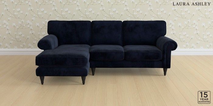 6.12.1 Buy Kingston by Laura Ashley Medium Sofa Chaise - Left Hand Orla Midnight Navy Low Turned - Black from the Next UK online shop Click here to use our accessible website