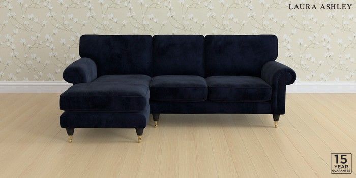 6.12.1 Buy Kingston by Laura Ashley Medium Sofa Chaise - Left Hand Orla Midnight Navy Low Brass Castor - Black from the Next UK online shop Click here to use our accessible website