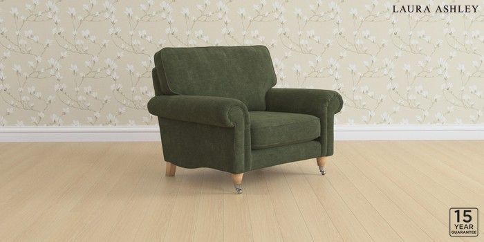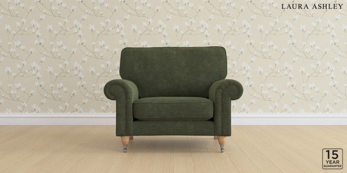 6.12.1 Buy Kingston by Laura Ashley Snuggle Alwyn Velvet Ivy Green Low Chrome Castor - Light Oak from the Next UK online shop Click here to use our accessible website