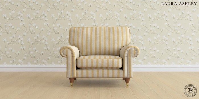 7.0.3 Buy Kingston by Laura Ashley Snuggle Kinsham Stripe Ochre Yellow Low Brass Castor - Teak from the Next UK online shop Click here to use our accessible website
