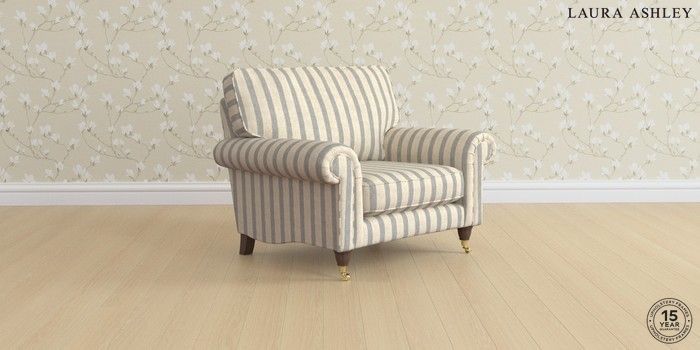 6.12.1 Buy Kingston by Laura Ashley Snuggle Kinsham Stripe Seaspray Blue Low Brass Castor - Chestnut from the Next UK online shop Click here to use our accessible website
