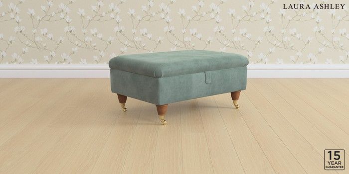 6.12.1 Buy Kingston by Laura Ashley Storage Footstool Ailsworth Fern Green Low Brass Castor - Teak from the Next UK online shop Click here to use our accessible website
