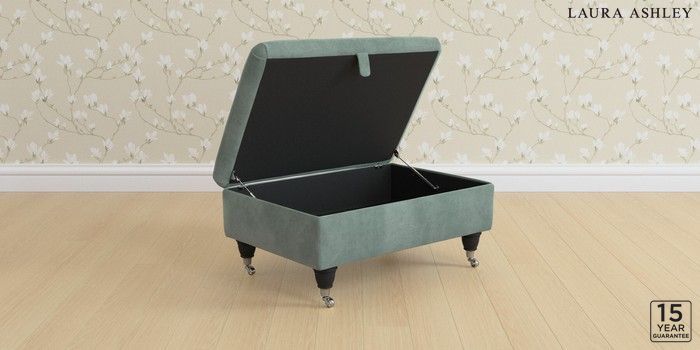 7.3.1 Buy Kingston by Laura Ashley Storage Footstool Ailsworth Fern Green Low Chrome Castor - Black from the Next UK online shop Click here to use our accessible website
