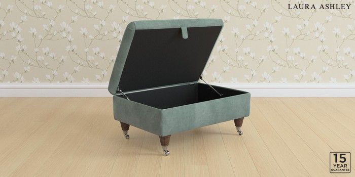 7.2.6 Buy Kingston by Laura Ashley Storage Footstool Ailsworth Fern Green Low Chrome Castor - Chestnut from the Next UK online shop Click here to use our accessible website