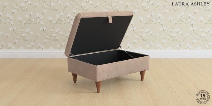 7.2.6 Buy Kingston by Laura Ashley Storage Footstool Ailsworth Mink Natural Low Turned - Teak from the Next UK online shop Click here to use our accessible website