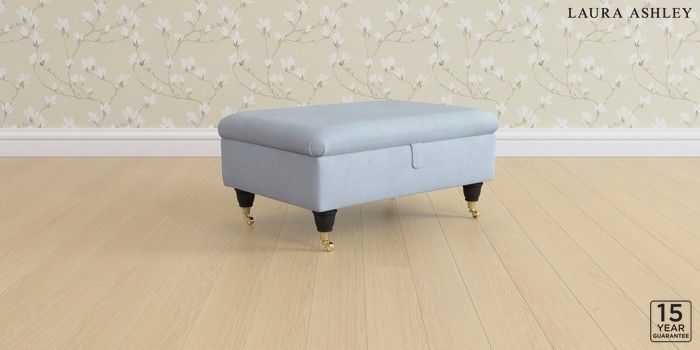 6.12.1 Buy Kingston by Laura Ashley Storage Footstool Ailsworth Newport Blue Low Brass Castor - Black from the Next UK online shop Click here to use our accessible website