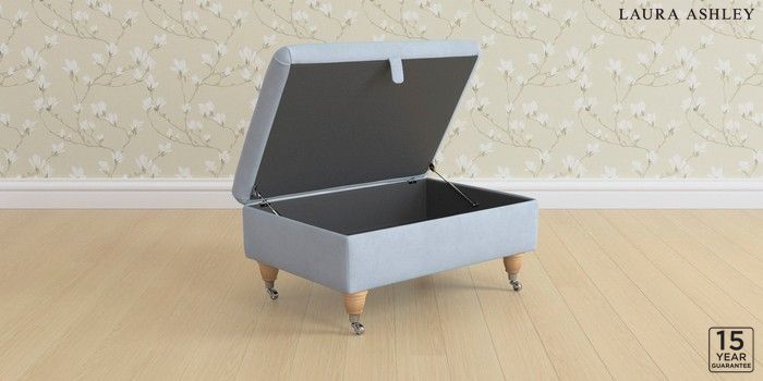 7.3.1 Buy Kingston by Laura Ashley Storage Footstool Ailsworth Newport Blue Low Chrome Castor - Light Oak from the Next UK online shop Click here to use our accessible website