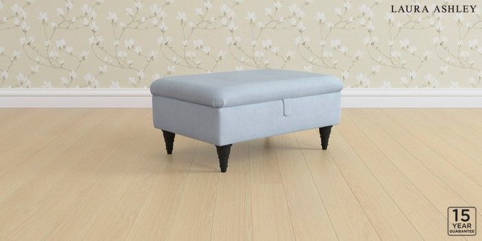 6.12.1 Buy Kingston by Laura Ashley Storage Footstool Ailsworth Newport Blue Low Turned - Black from the Next UK online shop Click here to use our accessible website