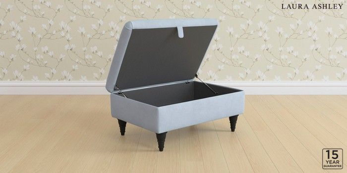 7.3.1 Buy Kingston by Laura Ashley Storage Footstool Ailsworth Newport Blue Low Turned - Black from the Next UK online shop Click here to use our accessible website