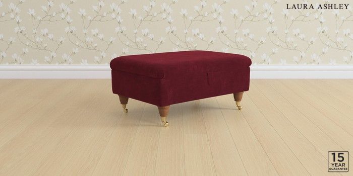 6.12.13 Buy Kingston by Laura Ashley Storage Footstool Alwyn Velvet Burgundy Red Low Brass Castor - Teak from the Next UK online shop Click here to use our accessible website