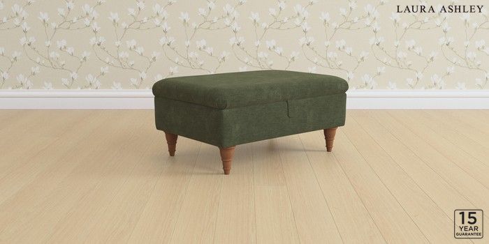 6.12.1 Buy Kingston by Laura Ashley Storage Footstool Alwyn Velvet Ivy Green Low Turned - Teak from the Next UK online shop Click here to use our accessible website
