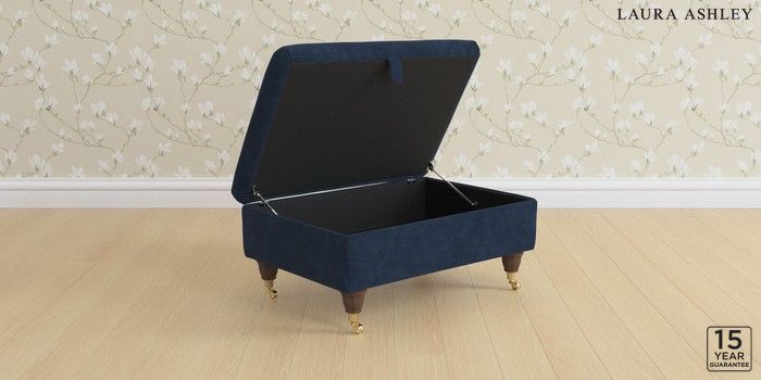 7.2.6 Buy Kingston by Laura Ashley Storage Footstool Alwyn Velvet Midnight Navy Low Brass Castor - Chestnut from the Next UK online shop Click here to use our accessible website