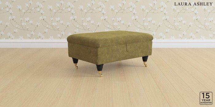 6.12.1 Buy Kingston by Laura Ashley Storage Footstool Alwyn Velvet Olive Green Low Brass Castor - Black from the Next UK online shop Click here to use our accessible website