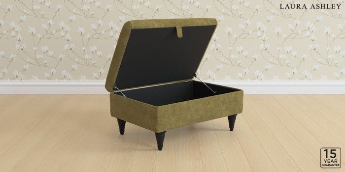 7.2.6 Buy Kingston by Laura Ashley Storage Footstool Alwyn Velvet Olive Green Low Turned - Black from the Next UK online shop Click here to use our accessible website