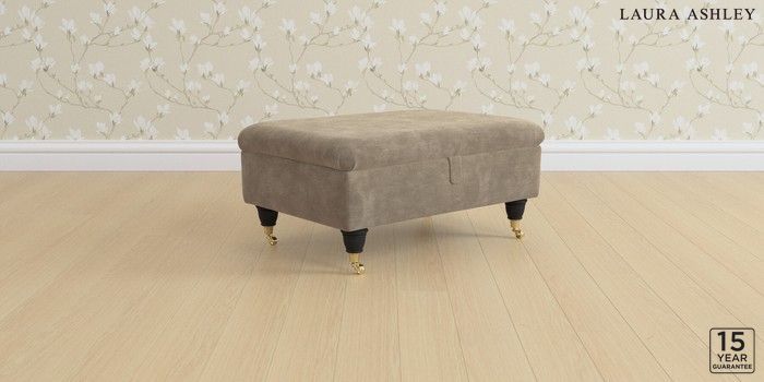 6.12.13 Buy Kingston by Laura Ashley Storage Footstool Alwyn Velvet Truffle Natural Low Brass Castor - Black from the Next UK online shop Click here to use our accessible website