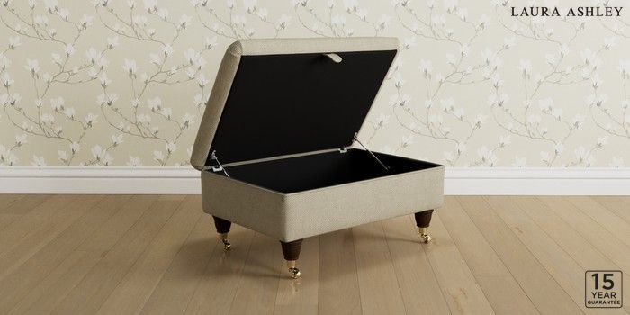 7.3.1 Buy Kingston by Laura Ashley Storage Footstool Anneliese Natural Low Brass Castor - Chestnut from the Next UK online shop Click here to use our accessible website