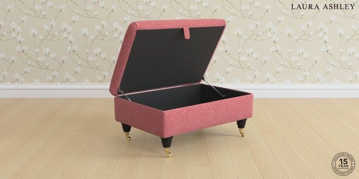 7.3.1 Buy Kingston by Laura Ashley Storage Footstool Anneliese Rosewood Red Low Brass Castor - Black from the Next UK online shop Click here to use our accessible website