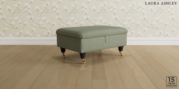 6.12.1 Buy Kingston by Laura Ashley Storage Footstool Anneliese Sage Green Low Brass Castor - Black from the Next UK online shop Click here to use our accessible website