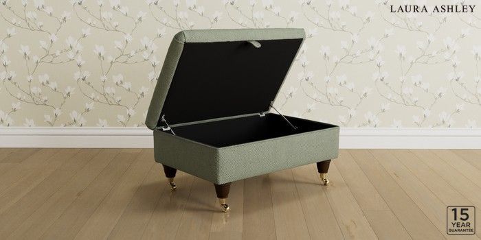 7.3.1 Buy Kingston by Laura Ashley Storage Footstool Anneliese Sage Green Low Brass Castor - Chestnut from the Next UK online shop Click here to use our accessible website