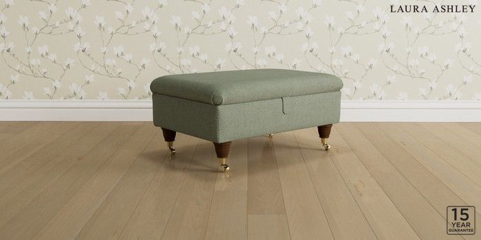 6.12.1 Buy Kingston by Laura Ashley Storage Footstool Anneliese Sage Green Low Brass Castor - Teak from the Next UK online shop Click here to use our accessible website