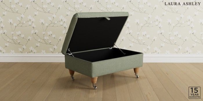 7.3.1 Buy Kingston by Laura Ashley Storage Footstool Anneliese Sage Green Low Chrome Castor - Light Oak from the Next UK online shop Click here to use our accessible website