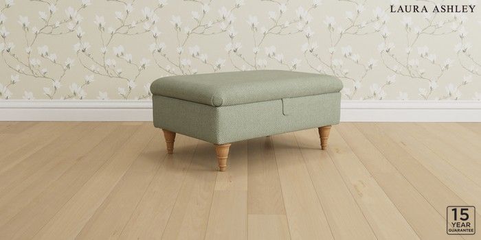 6.12.1 Buy Kingston by Laura Ashley Storage Footstool Anneliese Sage Green Low Turned - Light Oak from the Next UK online shop Click here to use our accessible website