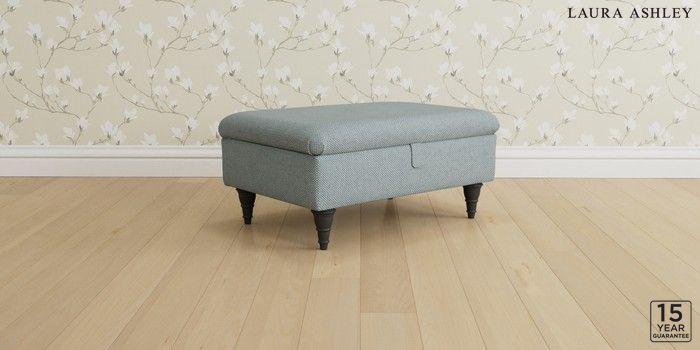 6.12.1 Buy Kingston by Laura Ashley Storage Footstool Anneliese Seaspray Blue Low Turned - Black from the Next UK online shop Click here to use our accessible website