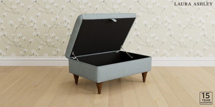 7.3.1 Buy Kingston by Laura Ashley Storage Footstool Anneliese Seaspray Blue Low Turned - Teak from the Next UK online shop Click here to use our accessible website