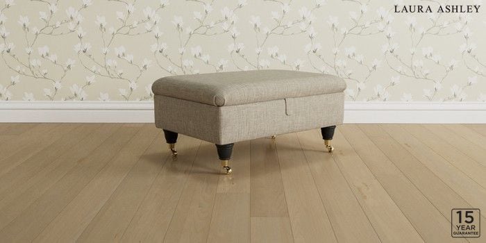 6.12.1 Buy Kingston by Laura Ashley Storage Footstool Bainton Natural Low Brass Castor - Black from the Next UK online shop Click here to use our accessible website