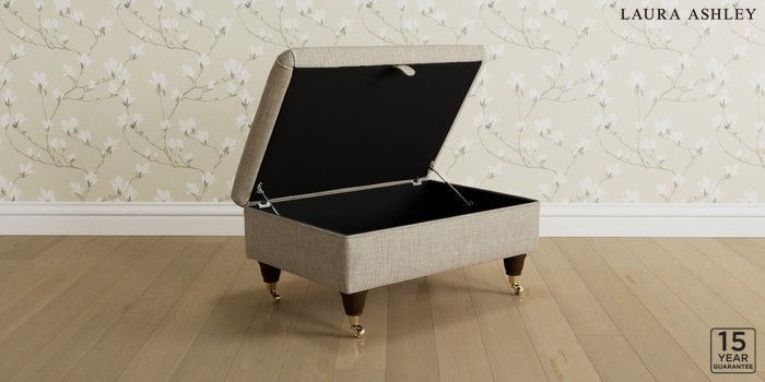 7.3.1 Buy Kingston by Laura Ashley Storage Footstool Bainton Natural Low Brass Castor - Chestnut from the Next UK online shop Click here to use our accessible website