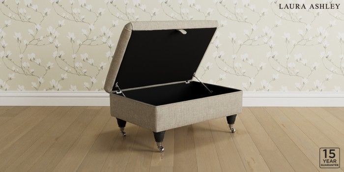 7.3.1 Buy Kingston by Laura Ashley Storage Footstool Bainton Natural Low Chrome Castor - Black from the Next UK online shop Click here to use our accessible website