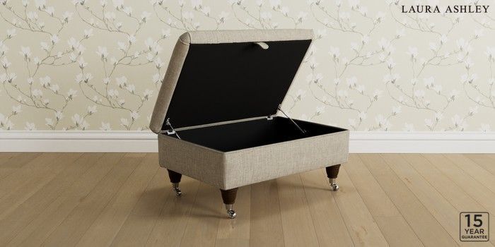 7.3.1 Buy Kingston by Laura Ashley Storage Footstool Bainton Natural Low Chrome Castor - Chestnut from the Next UK online shop Click here to use our accessible website