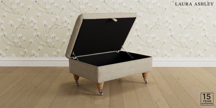 7.3.1 Buy Kingston by Laura Ashley Storage Footstool Bainton Natural Low Chrome Castor - Light Oak from the Next UK online shop Click here to use our accessible website