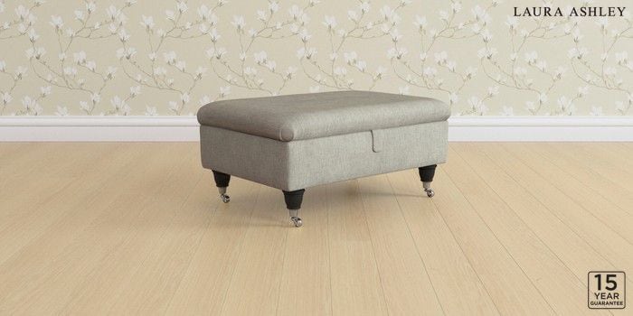 6.12.13 Buy Kingston by Laura Ashley Storage Footstool Bainton Pale Steel Grey Low Chrome Castor - Black from the Next UK online shop Click here to use our accessible website