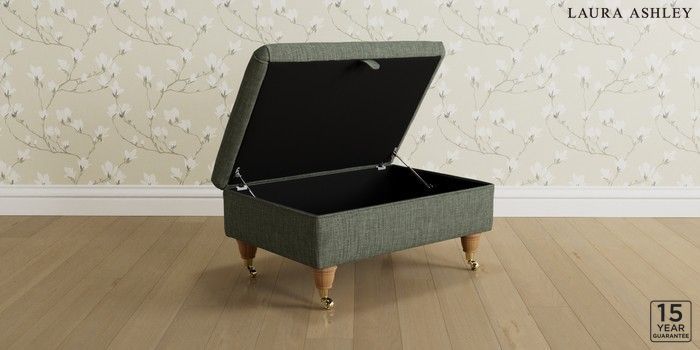 7.3.1 Buy Kingston by Laura Ashley Storage Footstool Bainton Sage Green Low Brass Castor - Light Oak from the Next UK online shop Click here to use our accessible website