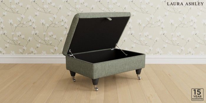 7.3.1 Buy Kingston by Laura Ashley Storage Footstool Bainton Sage Green Low Chrome Castor - Black from the Next UK online shop Click here to use our accessible website
