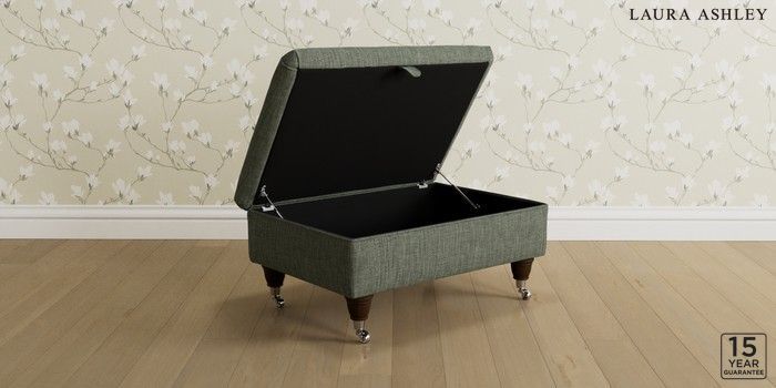 7.3.1 Buy Kingston by Laura Ashley Storage Footstool Bainton Sage Green Low Chrome Castor - Chestnut from the Next UK online shop Click here to use our accessible website