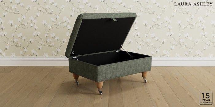 7.3.1 Buy Kingston by Laura Ashley Storage Footstool Bainton Sage Green Low Chrome Castor - Light Oak from the Next UK online shop Click here to use our accessible website