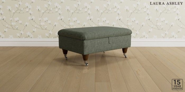 6.12.1 Buy Kingston by Laura Ashley Storage Footstool Bainton Sage Green Low Chrome Castor - Teak from the Next UK online shop Click here to use our accessible website