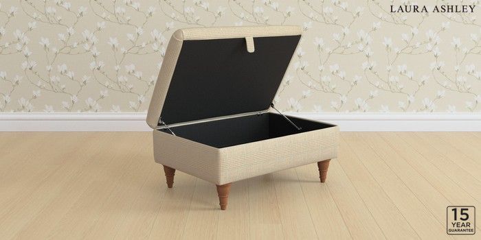 7.3.1 Buy Kingston by Laura Ashley Storage Footstool Birchgrove Check Oatmeal Natural Low Turned - Teak from the Next UK online shop Click here to use our accessible website