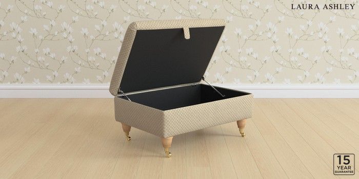 7.3.1 Buy Kingston by Laura Ashley Storage Footstool Chequers Hazelnut Natural Low Brass Castor - Light Oak from the Next UK online shop Click here to use our accessible website