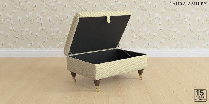 7.3.1 Buy Kingston by Laura Ashley Storage Footstool Chequers Hedgerow Green Low Brass Castor - Chestnut from the Next UK online shop Click here to use our accessible website
