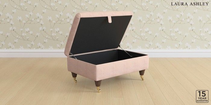 7.3.1 Buy Kingston by Laura Ashley Storage Footstool Edwin Chenille Blush Pink Low Brass Castor - Chestnut from the Next UK online shop Click here to use our accessible website