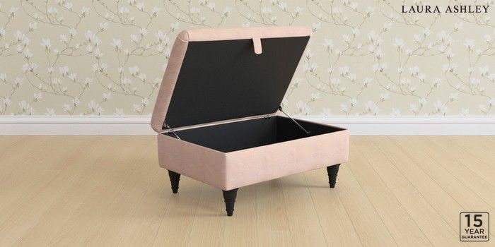 7.2.10 Buy Kingston by Laura Ashley Storage Footstool Edwin Chenille Blush Pink Low Turned - Black from the Next UK online shop Click here to use our accessible website
