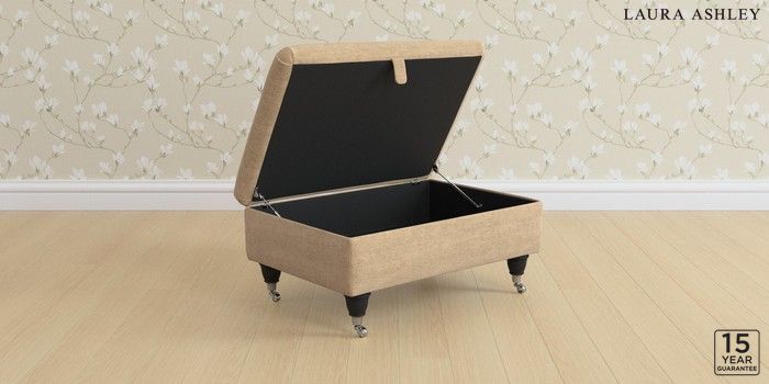 7.3.1 Buy Kingston by Laura Ashley Storage Footstool Edwin Chenille Gold Natural Low Chrome Castor - Black from the Next UK online shop Click here to use our accessible website