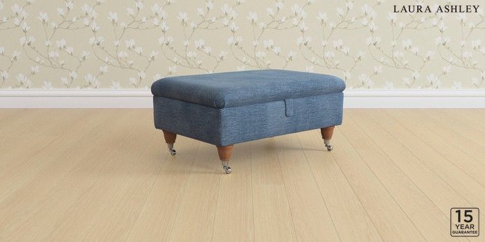 6.12.1 Buy Kingston by Laura Ashley Storage Footstool Edwin Chenille Seaspray Blue Low Chrome Castor - Teak from the Next UK online shop Click here to use our accessible website