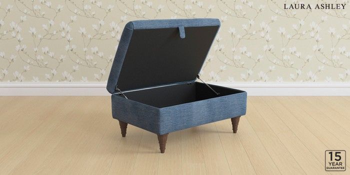 7.2.10 Buy Kingston by Laura Ashley Storage Footstool Edwin Chenille Seaspray Blue Low Turned - Chestnut from the Next UK online shop Click here to use our accessible website